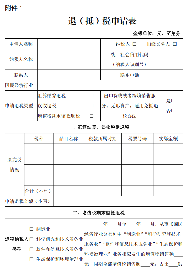 一、本表適用于辦理匯算結算、誤收稅款退稅、增值稅期末留抵退稅。